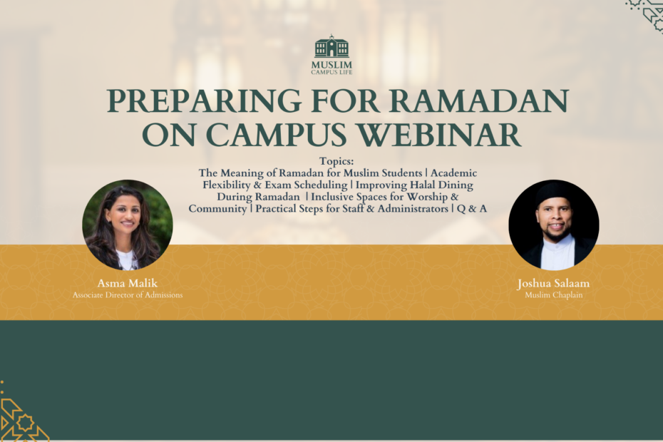 This year’s webinar focused on how institutions can meaningfully support Muslim students amid ongoing campus climate challenges, including Islamophobia, while also preparing for the academic and communal impact of Ramadan.